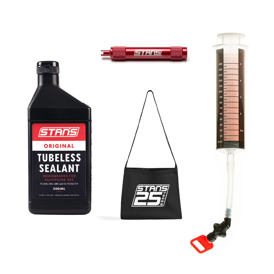 The Trail Bundle includes a 60ml bottle of our Original Tubeless Sealant and our Original DART Tool, along with a Stan's Musette that serves perfectly as a gift bag.
